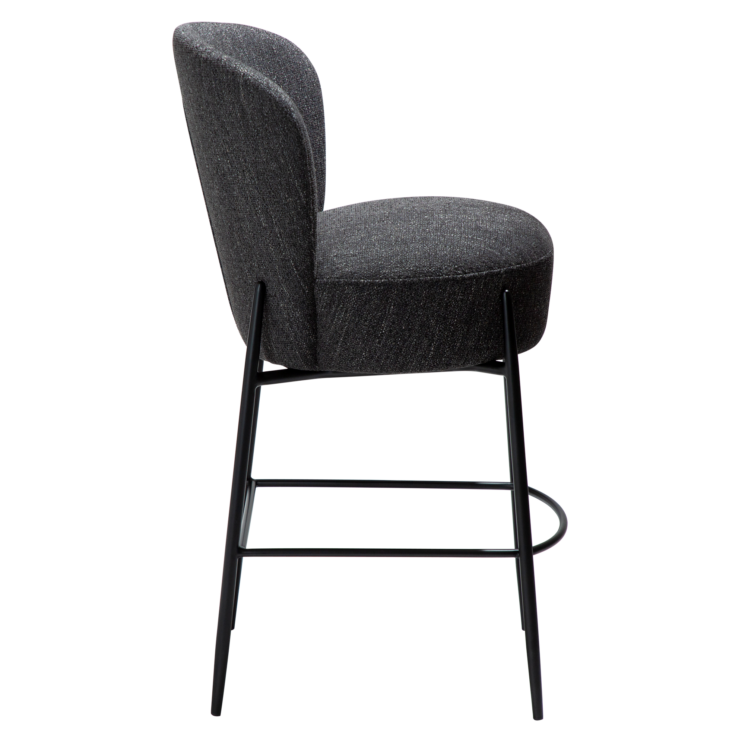 Barová židle ORBIT Raven black bouclé fabric with black metal legs