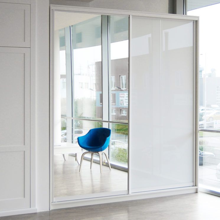 - Dveře AL rám bílý, výpň 1x Lacobel bílý 1x zrcadlo