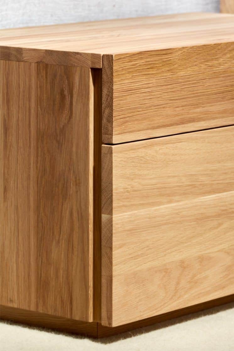 Tento designový noční stolek vyniká svou jednoduchostí a praktičností. Nejčastěji ho naši zákazníci vybírají v kombinaci s dalšími kousky z kolekce Atua, ale díky své nadčasovosti se hodí do každé ložnice. Je vyrobena z masivního dubu, ořechu nebo dýhy. Má dvě zásuvky na výsuvech BLUM, čílka zásuvek mohou být i v barvách dle vzorníku RAL .