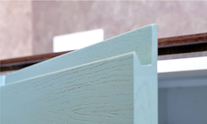 Úchytové profily se montují na korpus za dvířka. Dvířka a čílka zásuvek zůstávají úplně hladká.